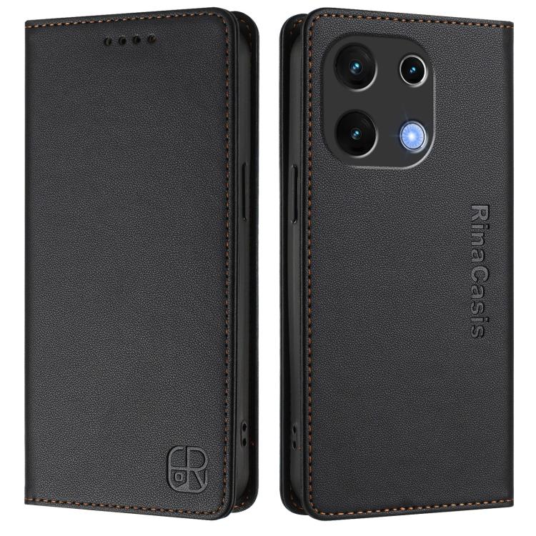 Funda de Cuero Rfid para Umidigi Note 100 Rc01 con Doble Pliegue y Succión Magnética (Negro)