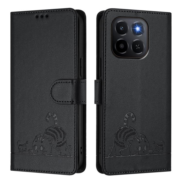 Funda de cuero RFID con estampado de gato y rata para Honor X6c 4G con cordón (negra)