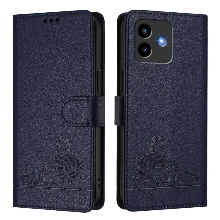 Funda de Cuero Rfid para Cubot Note 40 con Estampado de Rata y Gato y Cordón (Azul)