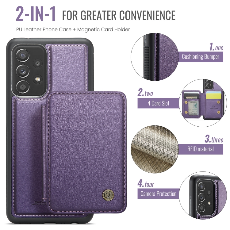 Funda Cuero Rfid Jeehood J05 para Samsung Galaxy A52 5G/A52 4G Estilo Magnético (Morado)