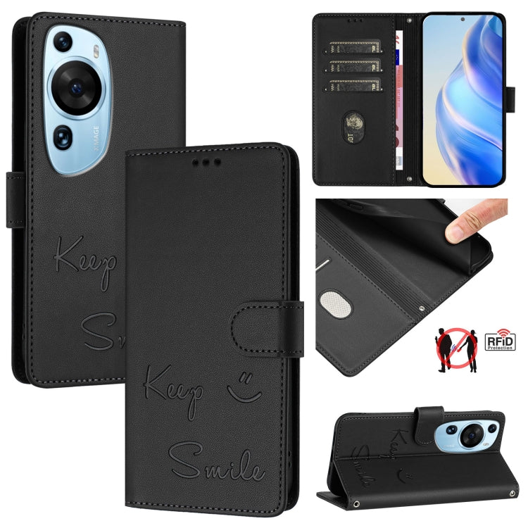 Funda de Cuero Rfid con Relieve Art Smile para Huawei P60 (Negra)