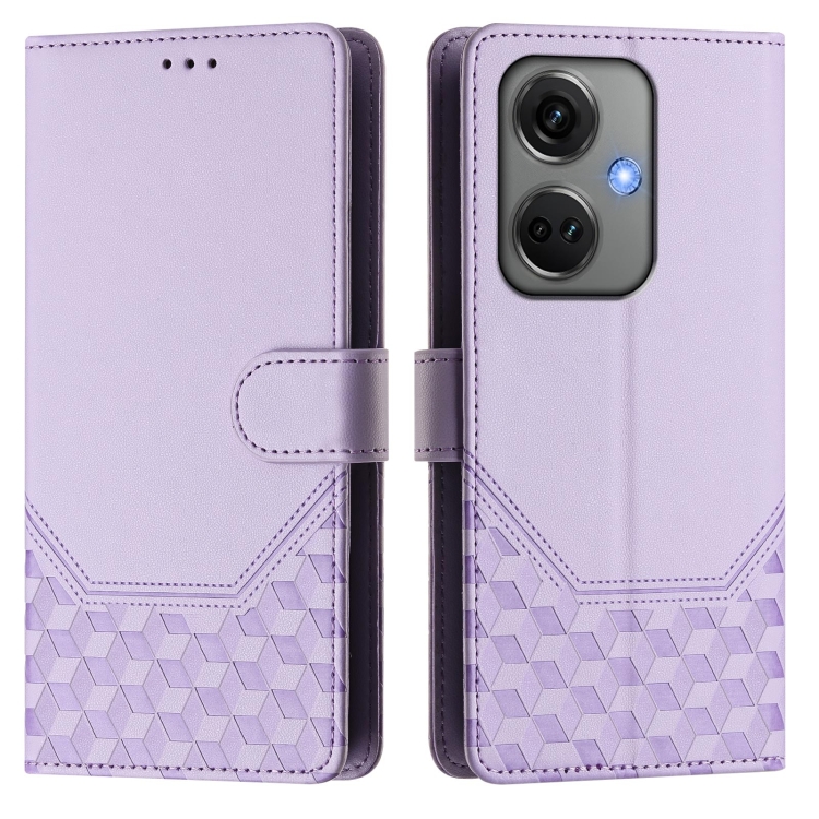 Funda de Cuero Rfid con Relieve Panal de Abeja para OnePlus Nord Ce3 5G (Morado Claro)