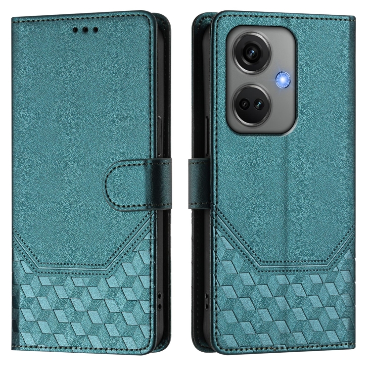 Funda de Cuero RFID con Relieve Panal de Abeja para OnePlus Nord CE3 5G (Verde Pavo Real)