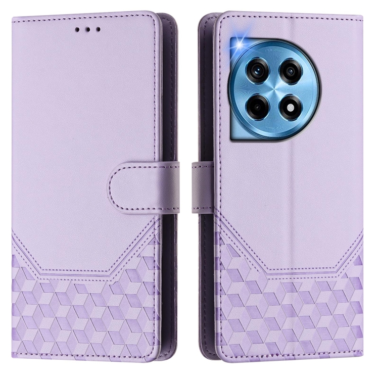 Funda de Cuero Rfid con Relieve de Panal Global para OnePlus 12 5G (Morado Claro)
