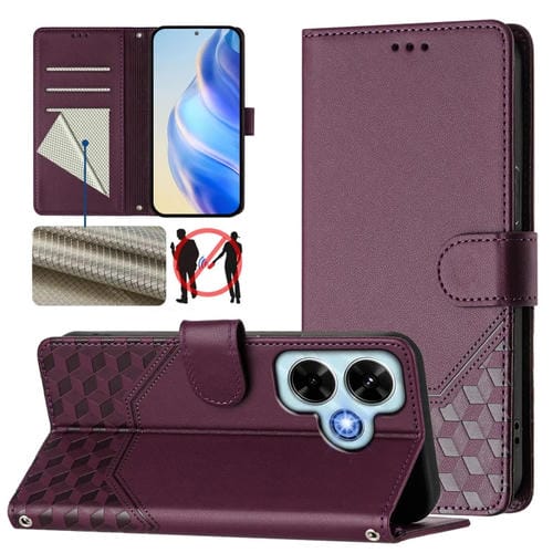 Funda de Cuero Rfid con Relieve de Panal Global para Redmi Note 13 4G (Violeta)