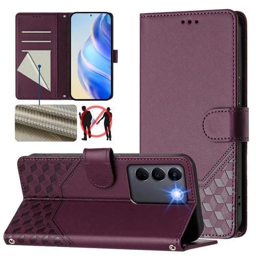 Funda de Cuero Rfid con Relieve de Panal Global para Vivo V27 5G/V27 Pro 5G (Violeta)