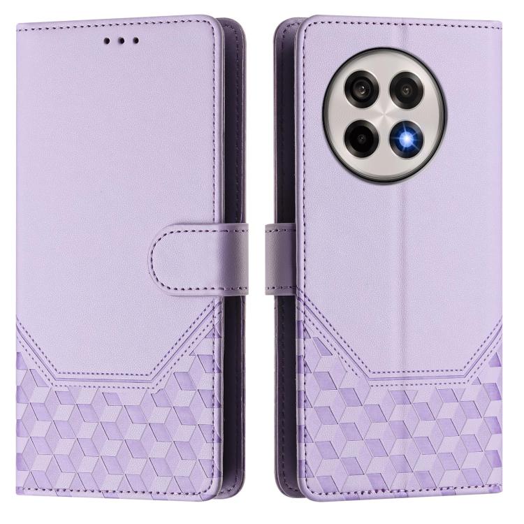Funda de Cuero Rfid con Relieve de Panal para OnePlus 13R Ace 5 Pro 5G (Morado Claro)