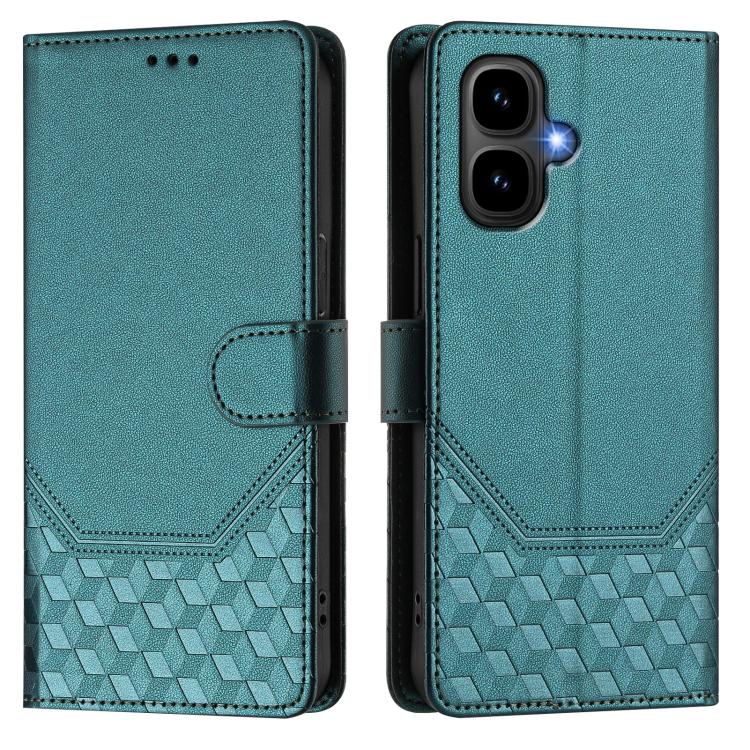 Funda de cuero RFID con relieve de panal para Tecno Pop 10 / Infinix Smart 10 4G (verde pavo real)
