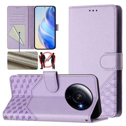 Funda de Cuero Rfid con Relieve de Panal para Xiaomi 12S Ultra (Morado Claro)