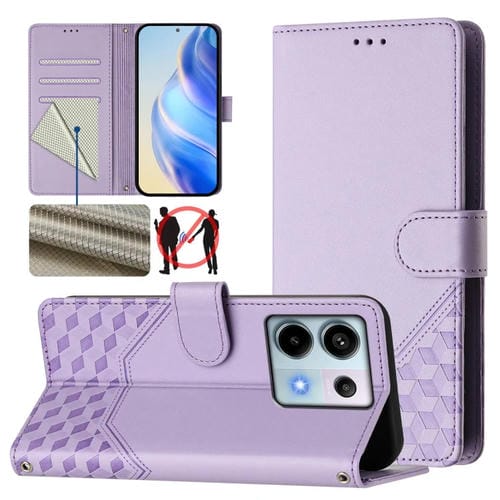 Funda de Cuero Rfid con Relieve de Panal para Xiaomi Poco X6 5G (Morado Claro)