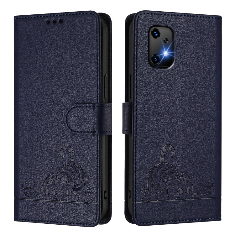Funda de Cuero Rfid para Umidigi Bison X20 con Relieve de Rata y Gato y Cordón (Azul)