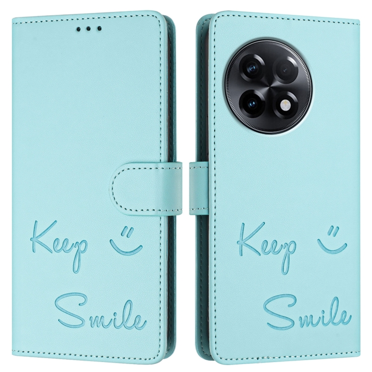Funda de Cuero RFID con Relieve Sonrisa Global para OnePlus 11R 5G (Verde Menta)