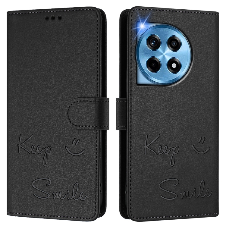 Funda de Cuero Rfid con Relieve de Sonrisa Global para OnePlus 12 5G (Negra)