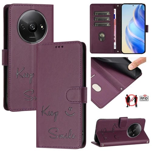 Funda de Cuero Rfid con Relieve de Sonrisa Global para Redmi A3 4G (Violeta)