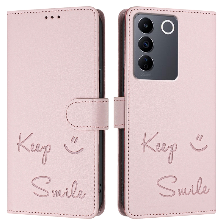 Funda de Cuero Rfid con Relieve de Sonrisa Global para Vivo V27E 4G (Rosa)