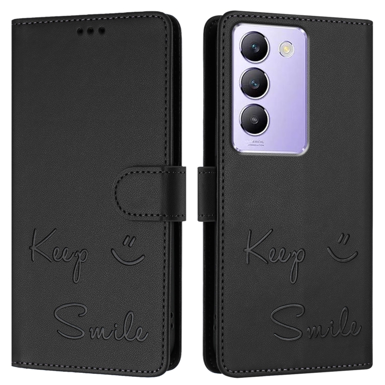 Funda de Cuero Rfid con Relieve de Sonrisa Global para Vivo Y200E 5G (Negra)