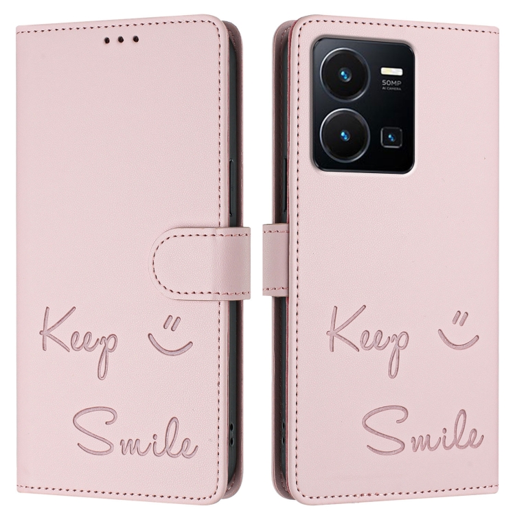 Funda de Cuero Rfid con Relieve de Sonrisa Global para Vivo Y35 4G (Rosa)