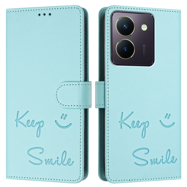 Funda de Cuero Rfid con Relieve de Sonrisa Global para Vivo Y36 4G (Verde Menta)
