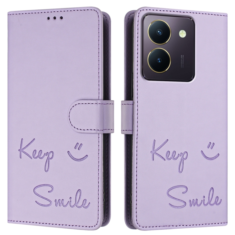 Funda de Cuero Rfid con Relieve de Sonrisa Global para Vivo Y36 5G (Morado Claro)
