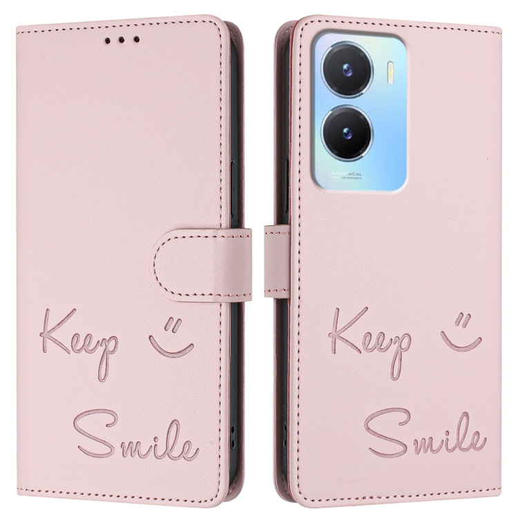 Funda de Cuero Rfid con Relieve de Sonrisa Global para Vivo Y56 5G (Rosa)