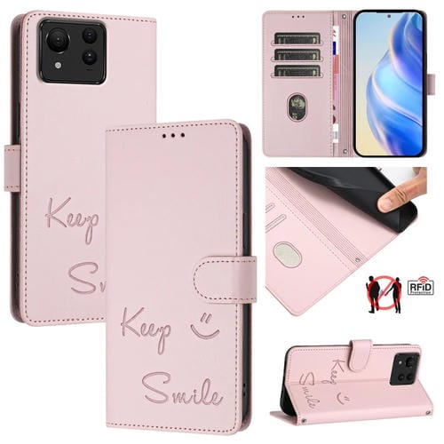 Funda de Cuero Rfid Asus Zenfone 11 Ultra con Relieve de Sonrisa (Rosa)