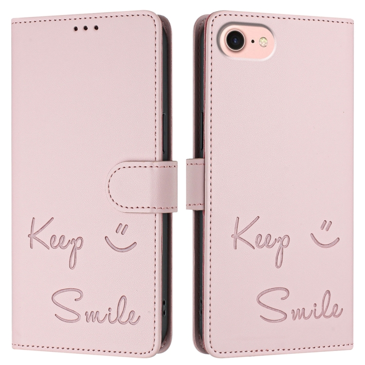 Funda de Cuero Rfid para iPhone 16E con Relieve de Sonrisa (Rosa)