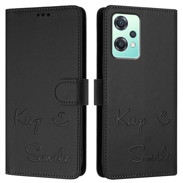 Funda de Cuero Rfid con Relieve de Sonrisa para OnePlus Nord 2 Lite (Negra)