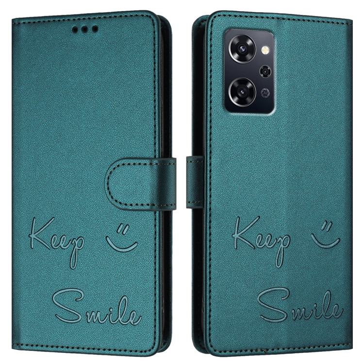 Funda de Cuero Rfid con Relieve de Sonrisa para Oppo Reno9 (Verde Pavo Real)