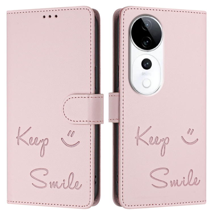 Funda de Cuero Rfid con Relieve de Sonrisa para Teléfono Vivo S19 Pro (Rosa)