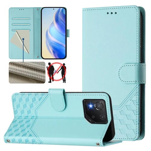 Funda de Cuero Rfid con Relieve en Panal para Asus Rog Phone 8/8 Pro (Verde Menta)