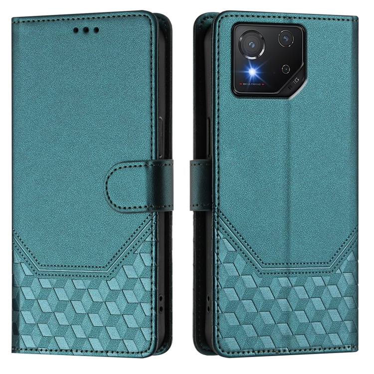 Funda de Cuero Rfid con Relieve En Panal para Asus Rog Phone 8/8 Pro (Verde Pavo Real)