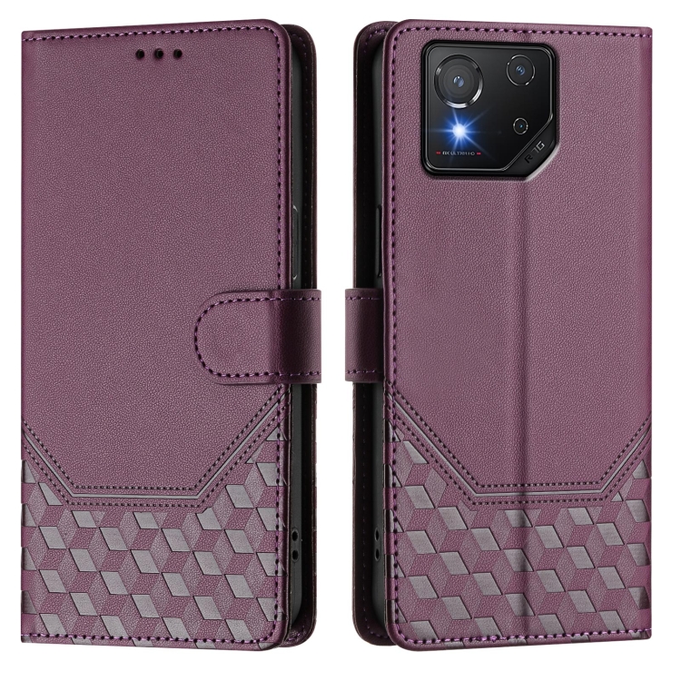 Funda de Cuero Rfid con Relieve en Panal para Asus Rog Phone 8/8 Pro (Violeta)