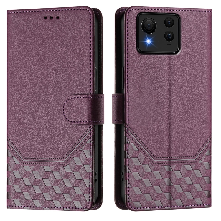 Funda de Cuero Rfid con Relieve en Panal para Asus Zenfone 11 Ultra (Violeta)