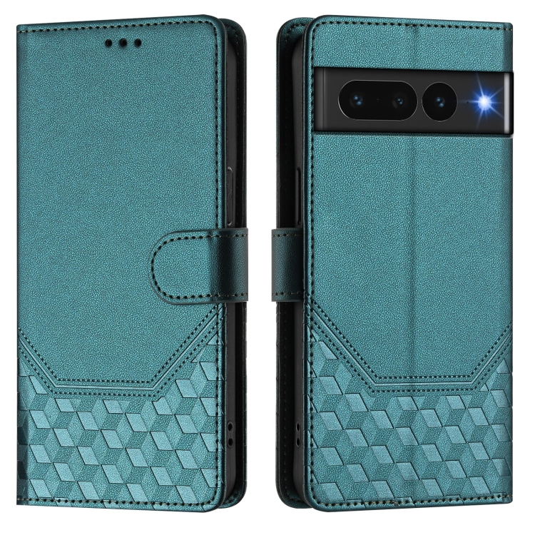 Funda de Cuero Rfid con Relieve en Panal para Google Pixel 7 Pro (Verde Pavo Real)