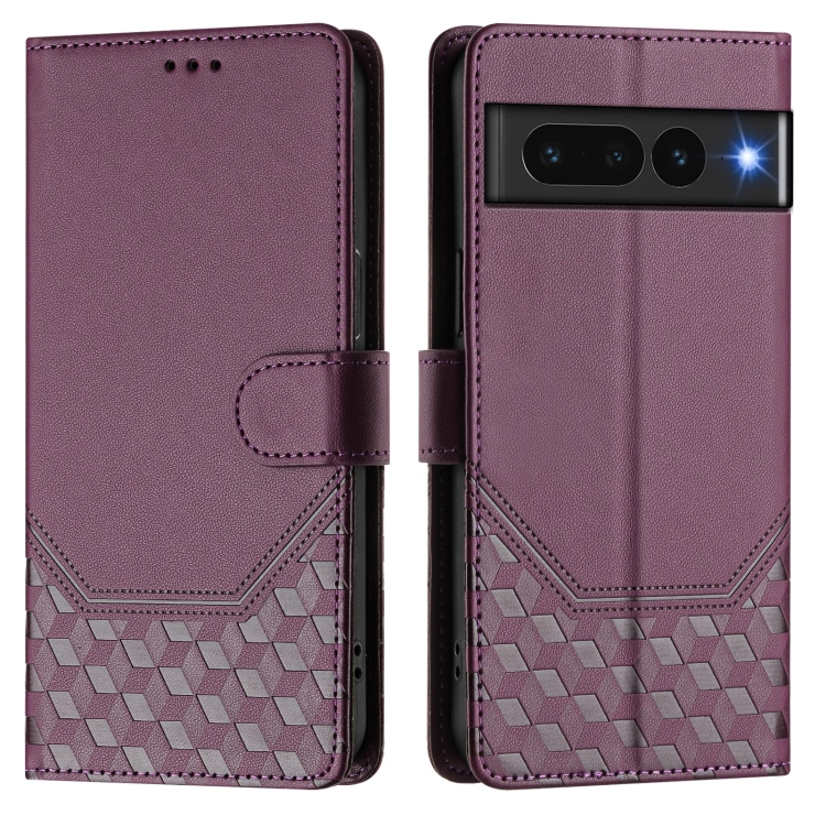 Funda de Cuero Rfid con Relieve en Panal para Google Pixel 7 Pro (Violeta)
