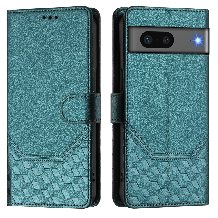 Funda de Cuero Rfid con Relieve en Panal para Google Pixel 7 (Verde Pavo Real)