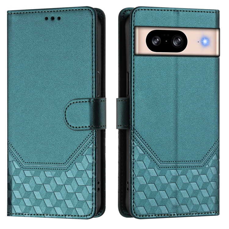 Funda de Cuero RFID con Relieve en Panal para Google Pixel 8 (Verde Pavo Real)