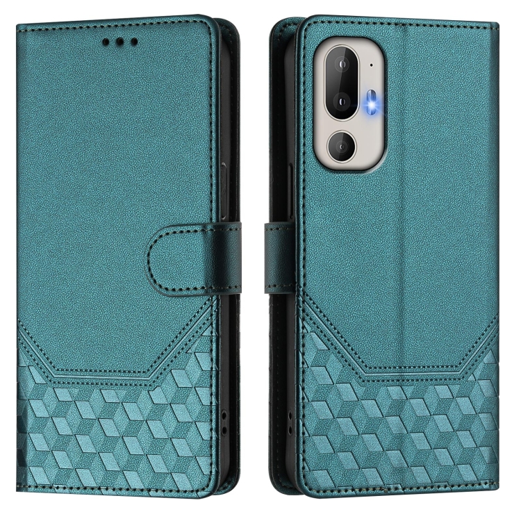 Funda de Cuero Rfid con Relieve en Panal para HTC U24 Pro (Verde Pavo Real)