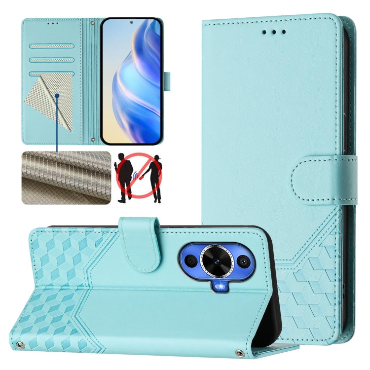 Funda de Cuero Rfid con Relieve en Panal para Huawei Nova 12S 4G (Verde Menta)