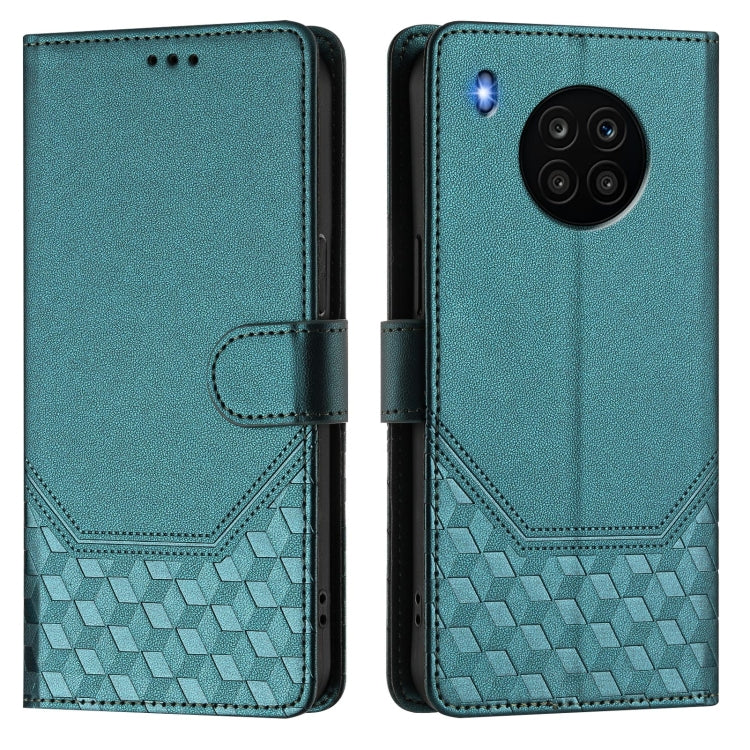 Funda de Cuero Rfid con Relieve en Panal para Huawei Nova 8I (Verde Pavo Real)