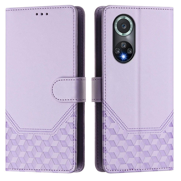 Funda de Cuero Rfid con Relieve en Panal para Huawei Nova 9 Pro y Honor 50 Pro (Morado Claro)