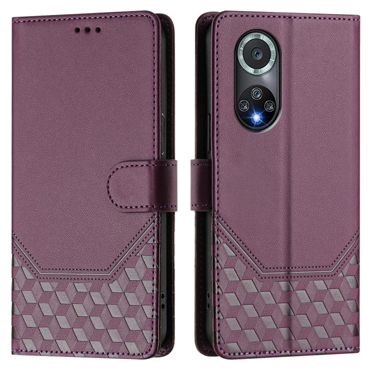 Funda de Cuero Rfid con Relieve en Panal para Huawei Nova 9 Pro Honor 50 Pro (Violeta)