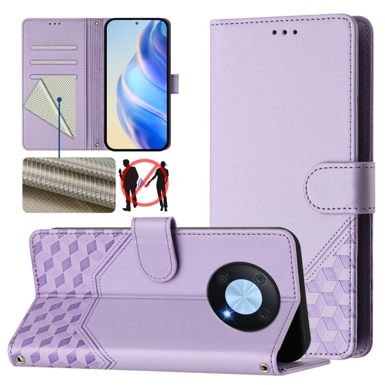 Funda de Cuero Rfid con Relieve en Panal para Huawei Nova Y90 (Morado Claro)