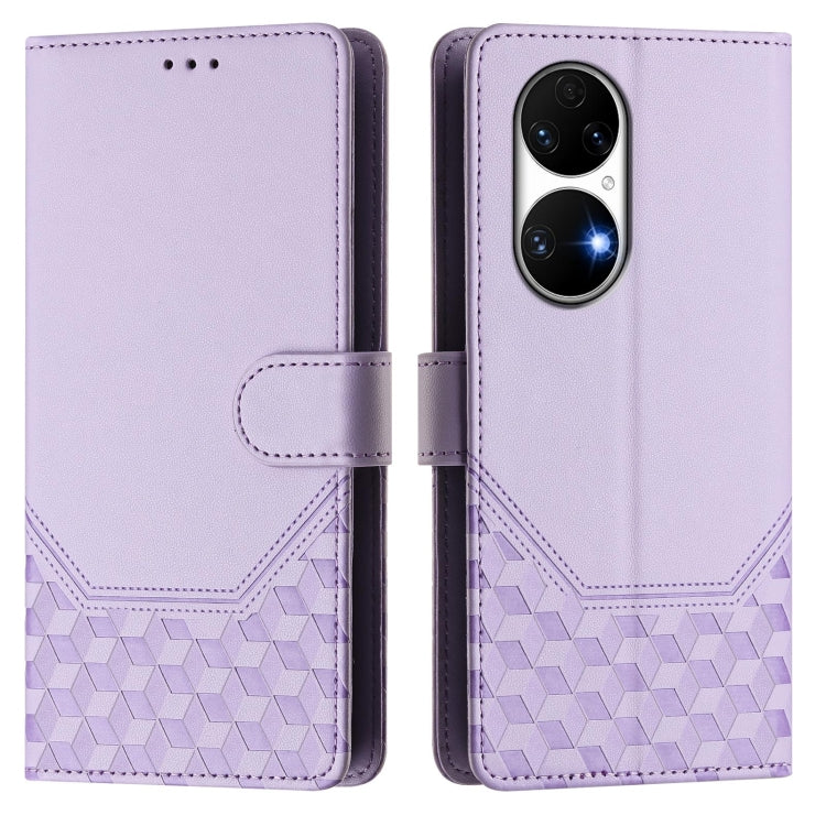 Funda de Cuero Rfid con Relieve en Panal para Huawei P50 (Morado Claro)
