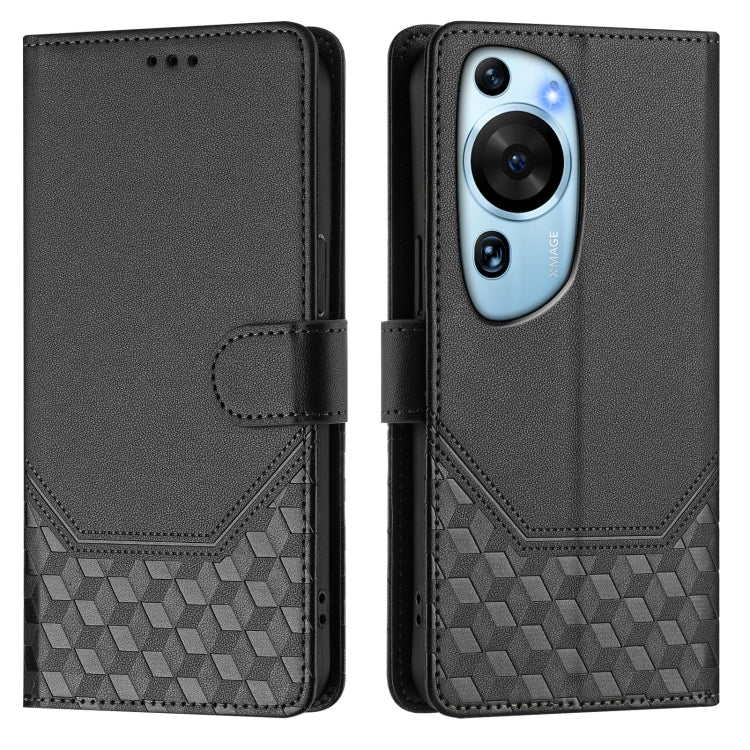 Funda de Cuero Rfid con Relieve en Panal para Huawei P60 (Negra)