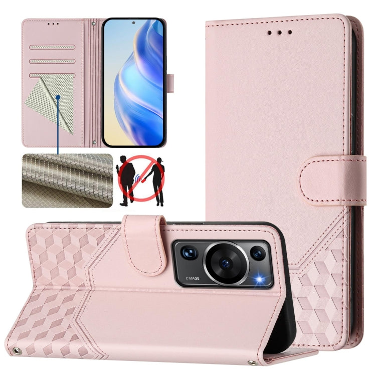 Funda de Cuero Rfid con Relieve en Panal para Huawei P60 y P60 Pro (Rosa)