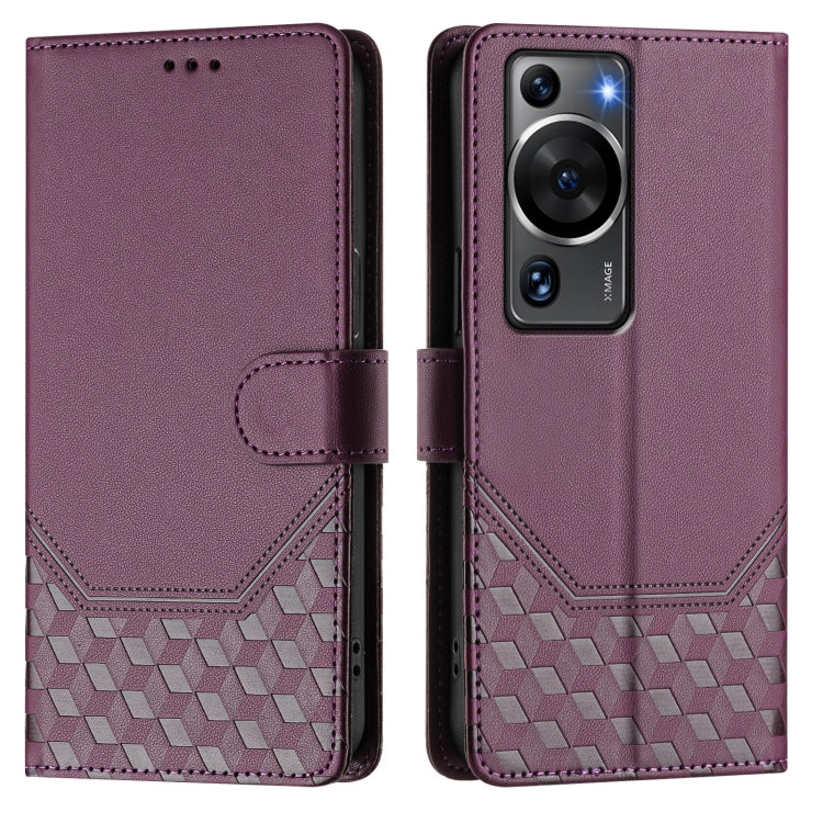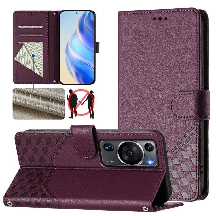 Funda de Cuero Rfid con Relieve en Panal para Huawei P60/P60 Pro (Violeta)
