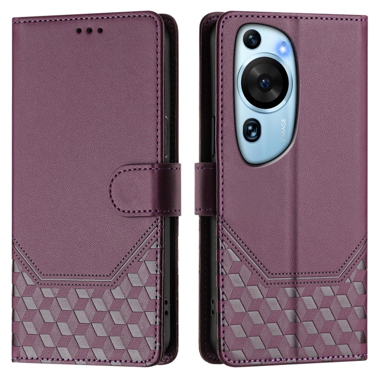 Funda de Cuero Rfid con Relieve en Panal para Huawei P60 (Violeta)