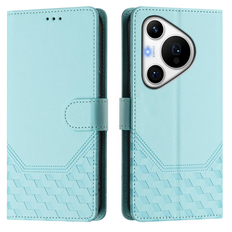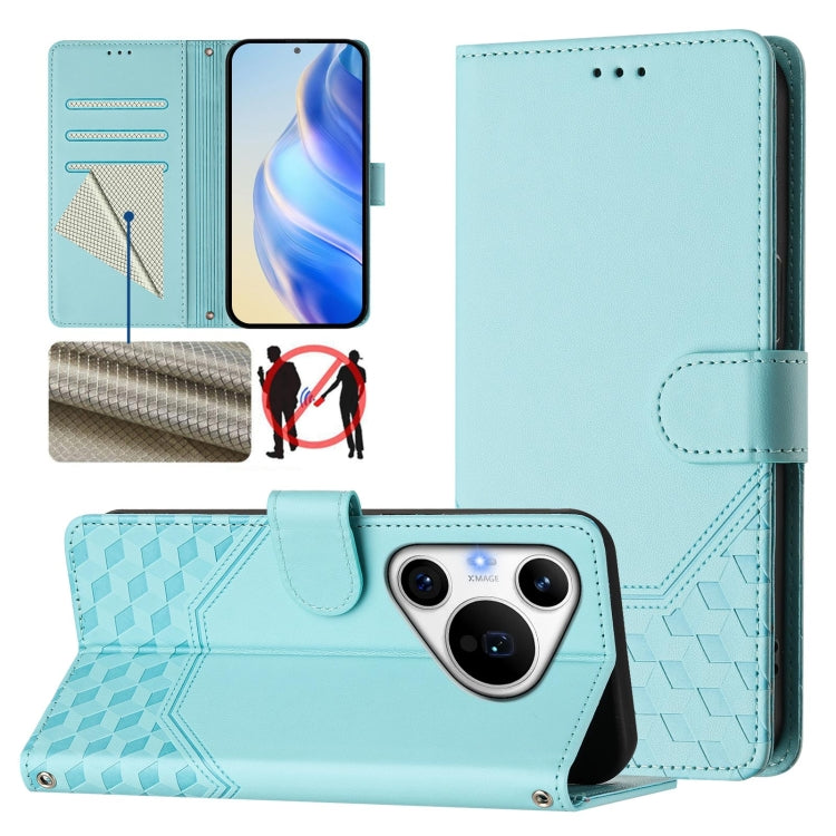 Funda de Cuero Rfid con Relieve en Panal para Huawei Pura 70 Pro y Pura 70 Pro+ (Verde Menta)