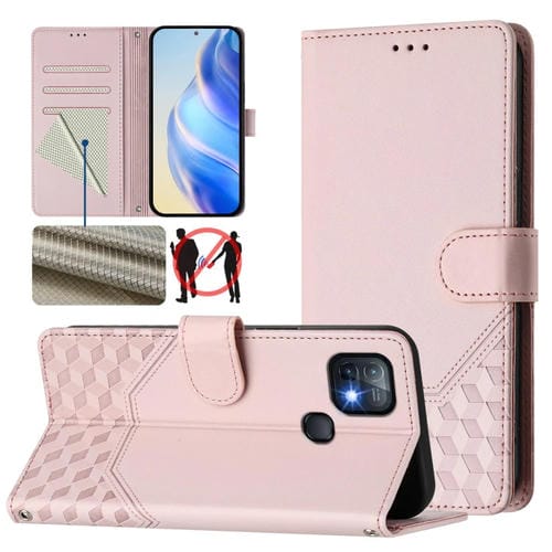Funda Cuero Rfid con Relieve en Panal para Infinix Hot 10I (Rosa)